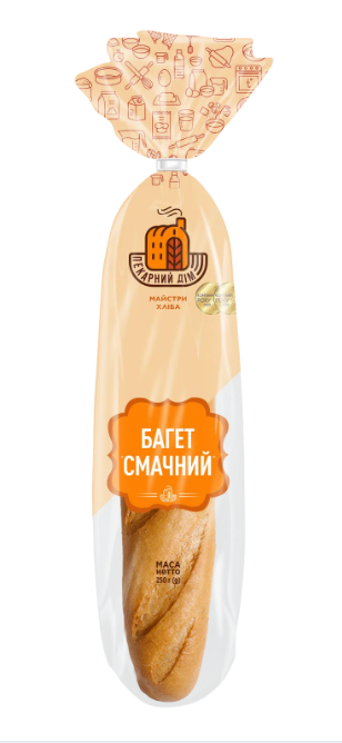 Упакований у зручну упаковку, багет зберігає свою свіжість і аромат довше, що робить його практичним для зберігання та використання в будь-який час. Він виготовлений із якісного борошна та натуральних інгредієнтів, що гарантує смачний та натуральний продукт для всієї родини.