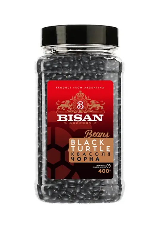BISAN Квасоля Чорна 400 г (пластикова банка) – це готовий до вживання продукт із відбірної чорної квасолі, приготованої у власному соку. Квасоля має ніжну текстуру, насичений темний колір і натуральний смак без додаткових домішок.