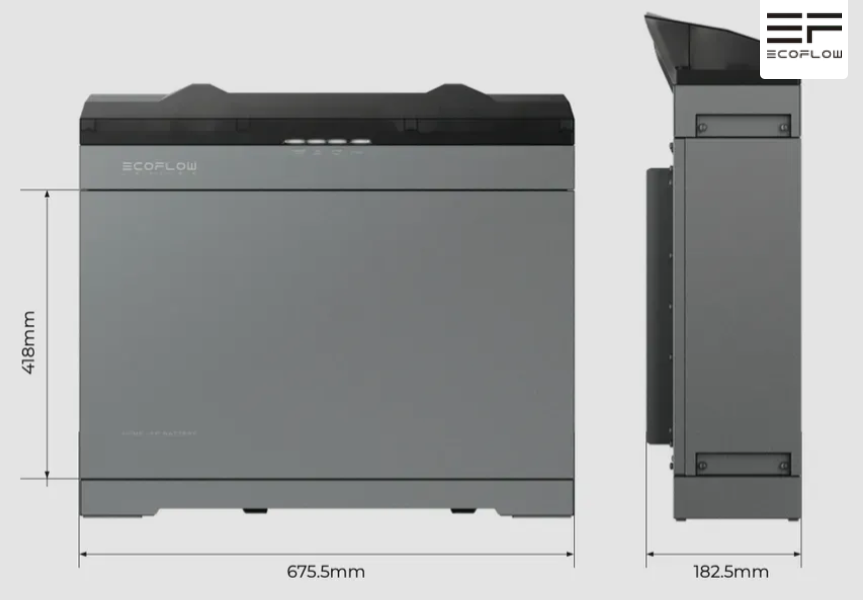 Має міцний та надійний матовий металевий матеріал. Завдяки компактному розміру всього 180 мм, батарея чудово вписується в підвал або гараж і зберігає більше місця для інших пристроїв. На інверторі та контрольній коробці є відкидний клапан для приховання кабелів.