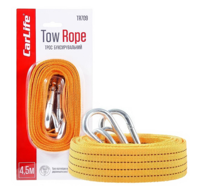CARLIFE трос стрічковий, 3 т, 4.5 м — це міцний буксирувальний ремінь, виготовлений із якісної синтетичної стрічки, що витримує навантаження до 3 тонн. Оснащений надійними металевими карабінами, які забезпечують швидке та безпечне кріплення. Довжина 4.5 м оптимальна для буксирування легкових автомобілів у міських та заміських умовах. Постачається у блістерній упаковці, що захищає виріб та зручна для продажу. У ящику — 30 штук, що робить товар вигідним для гуртових закупівель.