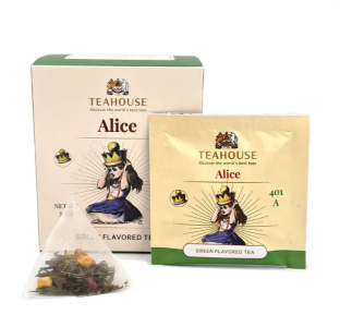 Чай Teahouse «Аліса» — це витончений купаж на основі китайського зеленого чаю Сенча, що грає всіма відтінками свіжості та легкості. До нього додано яскраві ягоди та соковиті фрукти: шипшину, яблуко, полуницю, журавлину — і несподіваний ананас у післясмаку, що додає грайливості та чарівності.