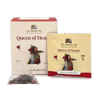 Чай Teahouse «Красная Королева» — це яскравий, емоційний купаж на основі класичного чорного кенійського чаю. До нього додано шматочки полуниці, папаї, кокоса, бутони троянд, пелюстки каркаде — і все це щедро приправлено нотками ванілі та барбарису. Смак — багатий, грайливий, з легкою кислинкою, фруктовою солодкістю та ароматом льодяників.