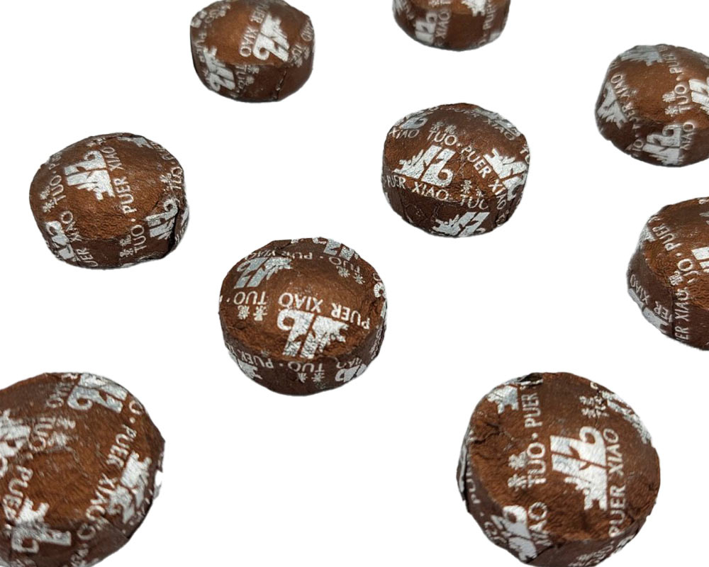 Jinglong Puer Xiao Tuo — це класичний шу пуер з провінції Юньнань, спресований у компактну форму міні-точа вагою 5 г. Має глибокий, насичений настій темного кольору з квітковими та медовими нотками. Смак солодкуватий, маслянистий, густий, має ефект свіжості та легкі солонуваті мінеральні тони. Якість сировини і зручна форма роблять цей чай ідеальним для щоденного ритуалу.