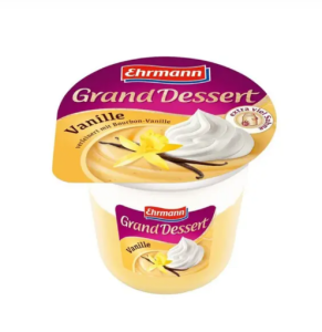 Десерт Grand ванільний 4,7% жирність 190 г TM Ehrmann – ніжний молочний десерт із приємним ванільним смаком. Завдяки оптимальній жирності 4,7% він має кремову консистенцію та насичений смак. Упаковка 190 г зручна для споживання вдома, на роботі чи в дорозі. Продукт виготовлений із високоякісного молока та відповідає стандартам німецького бренду Ehrmann, який відомий своєю увагою до якості та натуральності.