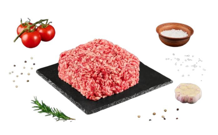 Преміальний фарш з витриманої яловичини - має інтенсивний, глибокий м’ясний смак і ідеальну текстуру для бургерів. Створений для поціновувачів справжнього мʼяса, чудово тримає форму при смаженні.