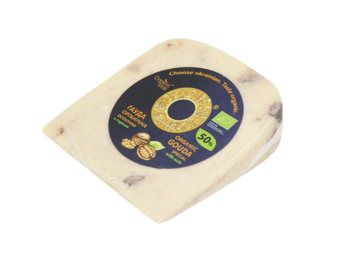 Гауда органічна особлива з горіхом, 200 г — це вишуканий органічний сир, виготовлений з високоякісного органічного молока за традиційною технологією. Ніжний вершковий смак класичної Гауди гармонійно поєднується з насиченими горіховими нотками, що надають сиру особливого характеру та глибини смаку. Сир має щільну, однорідну текстуру, легко нарізається та добре розкриває аромат як у холодних, так і в гарячих стравах. Він ідеально підходить для сирних тарілок, бутербродів, салатів, пасти, запіканок або як самостійна закуска. Завдяки органічному походженню та збалансованому смаку цей сир стане чудовим вибором для щоденного раціону й святкового столу.