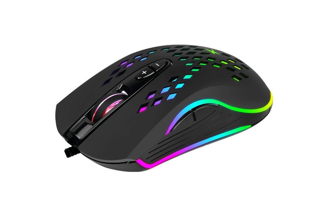 Технічні можливості Модель оснащена оптичним сенсором із максимальною роздільною здатністю 6400 dpi. Зміна чутливості здійснюється одним натисканням кнопки в діапазоні 800–1600–2400–3200–4800–6400 dpi, що дозволяє швидко адаптувати мишу до різних ігрових сценаріїв. Сім функціональних кнопок розташовані так, щоб забезпечити комфорт та миттєву реакцію — особливо важливо у динамічних іграх.