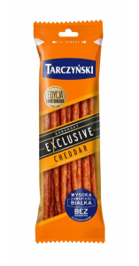 Кабаноси Ексклюзив Сир Чеддер 90 г, Tarczynski — це тонкі ковбаски преміум-класу, виготовлені зі свинячого та курячого м’яса з додаванням ароматного сиру чеддер. Вони мають насичений смак, ніжну текстуру та приємний аромат копчення. Завдяки компактній упаковці 90 г кабаноси зручно брати із собою на роботу, навчання чи подорож.