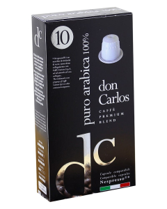 Кава в капсулах Carraro Don Carlos Puro Arabica - високоякісний купаж, створений з зерен добірної арабіки середнього ступеня обсмаження. Процес обсмажування проходить у захисній атмосфері, після чого зерна подрібнюються і фасуються в капсули, які надійно зберігають усі смако-ароматичні властивості до моменту заварювання.