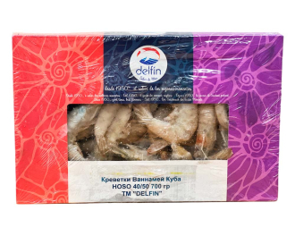 Креветки Ваннамей Куба HOSO 40/50 700 г від ТМ Delfin — це якісний морський делікатес із ніжним смаком і щільною текстурою. Вони мають калібр 40/50, що означає приблизно 40–50 штук на кілограм — середній розмір, зручний для приготування різноманітних страв.