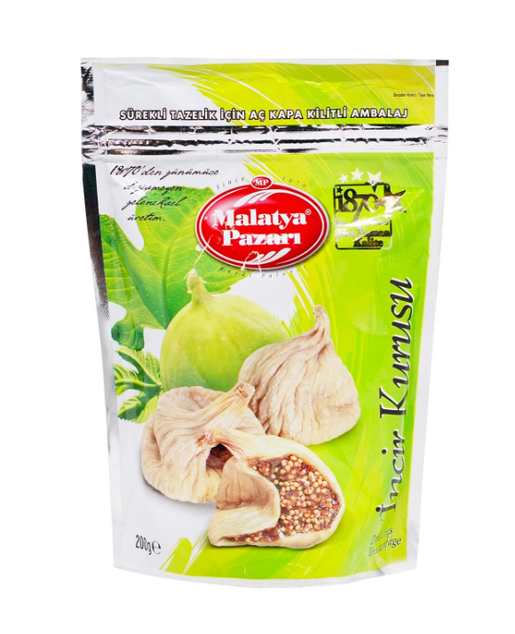 Malatya Pazari Інжир 200 г – це натуральний та смачний сухофрукт, який стане ідеальним перекусом або додатком до десертів, випічки та салатів. Солодкий і насичений смак інжиру разом із м’якою та соковитою текстурою дарує справжнє гастрономічне задоволення.