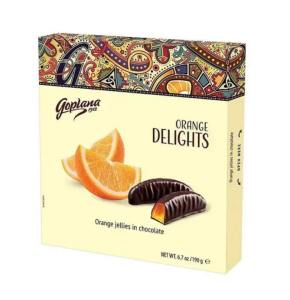 Мармелад жувальний "Delights" смак апельсин у шоколаді 190 г, ТМ Colian — це вишукане поєднання ніжного фруктового мармеладу з яскравим апельсиновим смаком та покриття з ароматного молочного шоколаду. Ідеальний десерт для тих, хто любить гармонію солодкого та цитрусової свіжості. Підійде як для щоденного смакування, так і для подарунка.