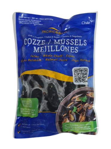 Мідії чилійські Pacific Gold варено-морожені у мушлях, 500 г – це високоякісні морепродукти з Чилі, які проходять процес варіння перед заморожуванням, що дозволяє зберегти їхній ніжний смак та насичений морський аромат. Завдяки формату у мушлях вони залишаються соковитими та зручними для приготування різноманітних страв: від класичних закусок до вишуканих основних страв. Продукт готовий до термічної обробки та зберігає свої властивості завдяки швидкому заморожуванню.