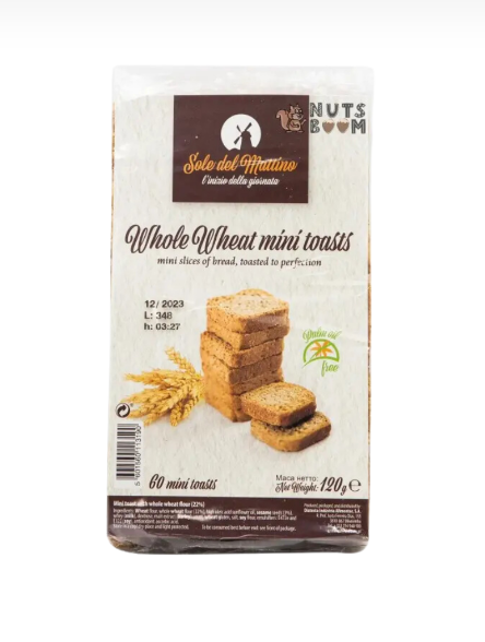 Міні-тости з пшеничного борошна 120 г — хрумкі міні-тости, виготовлені з пшеничного борошна за класичною рецептурою. Мають легку, повітряну текстуру та нейтральний смак, що робить їх універсальною основою для різноманітних закусок. Підходять для приготування канапе, подачі з сирами, паштетами, соусами, а також як доповнення до супів і салатів. Зручний формат та компактна упаковка роблять продукт практичним для щоденного використання та святкових подій.