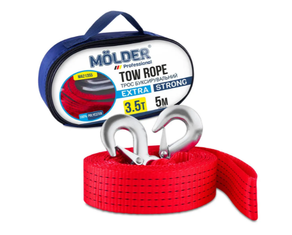 MOLDER трос стрічковий, 3.5 т, 5 м — це надійний буксирувальний ремінь, виготовлений із міцної синтетичної стрічки, що витримує навантаження до 3.5 тонн. Оснащений металевими гачками для швидкого та безпечного кріплення. Довжина 5 м забезпечує комфортне буксирування легкових автомобілів у міських та заміських умовах. Завдяки компактності та міцності, трос стане незамінним аксесуаром у багажнику кожного автомобіліста.