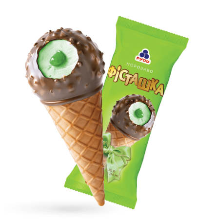 Вишуканий десерт для справжніх поціновувачів — морозиво зі смаком фісташки від бренду «Рудь». Це ідеальне поєднання ніжного вершкового пломбіру з характерним горіховим ароматом та хрусткого вафельного ріжка, який зсередини вкритий тонким шаром шоколадної глазурі.