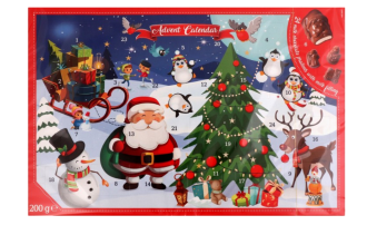 Календар оформлений у різдвяному стилі та представлений у різних варіантах дизайну — чудовий подарунок для дітей і дорослих, який поєднує традицію, естетику та смак справжнього шоколаду. Вага — 200 г.