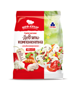 Овочева суміш 9-ти компонентна 400 г (Рудь) — це заморожений набір із дев’яти різних овочів, підібраних у правильній пропорції для створення збалансованих і корисних страв. Завдяки сучасній технології шокового заморожування овочі зберігають свій натуральний смак, аромат, колір та більшість корисних речовин.