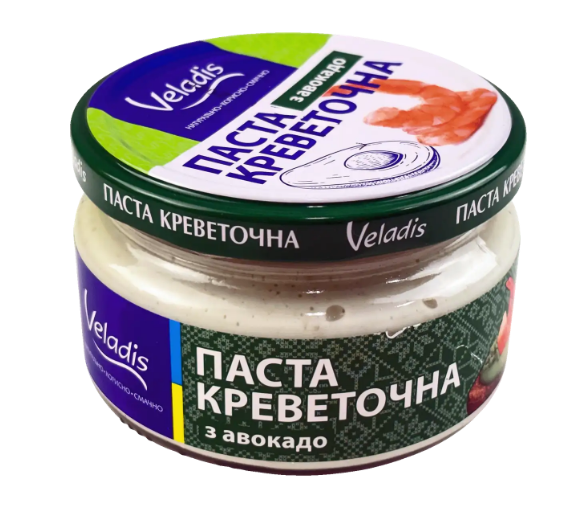 Відкрийте для себе екзотичне поєднання смаків у новій пасті від Veladis! Це ніжний десертний соус, у якому гармонійно поєднуються шматочки відбірної вареної креветки та м'яка текстура стиглого авокадо. Такий дует створює свіжий, вершковий смак із витонченими морськими нотками.