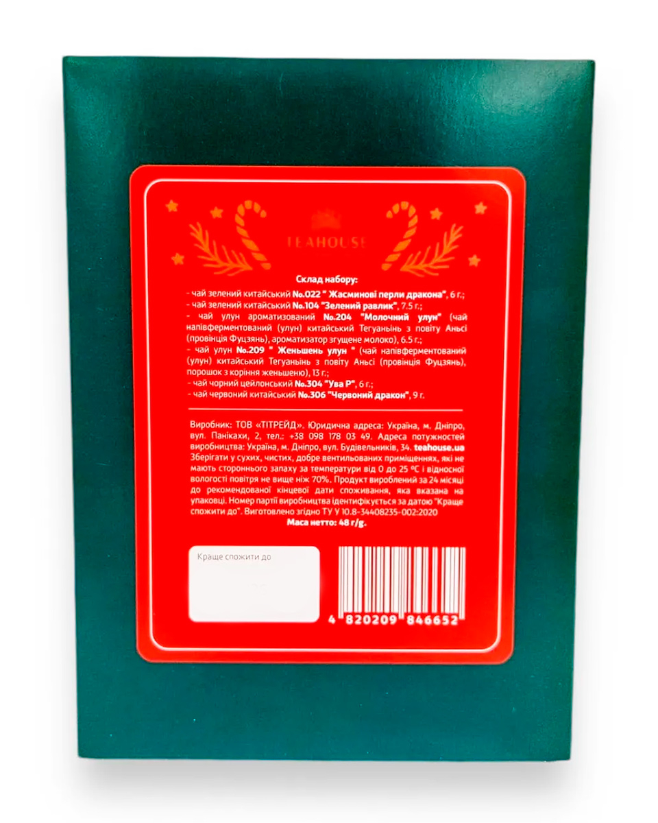 - Червоний дракон № 306 – фірмовий червоний чай TEAHOUSE – натуральний енергетик зі складною ароматикою сухофруктів і осіннього листя;