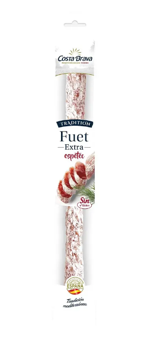 Салямі Costa Brava Fuet Extra – це традиційний каталонський делікатес, виготовлений із добірного свинячого м’яса та натуральних спецій. Має характерну тонку форму, ніжну текстуру та насичений смак, який чудово поєднується з сиром, вином чи свіжим хлібом. Завдяки класичному рецепту та ретельному процесу сушіння, фует зберігає автентичний аромат і стає ідеальним вибором для закусок, святкових застіль або щоденного перекусу. Упаковка 150 г зручна для індивідуального споживання та легко поміщається у холодильнику.