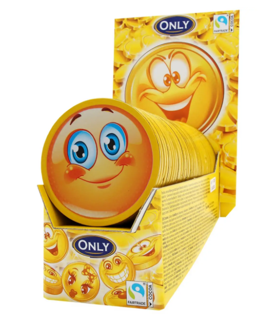 Шоколад молочний Emoji талер 2x36x21,5 г Only, Італія — це смачний молочний шоколад у формі круглих талерок із яскравим дизайном у стилі Emoji, який точно викличе усмішку. Виготовлений в Італії з якісного молочного шоколаду, цей продукт має ніжний, солодкий смак і стане чудовим солодким подарунком або перекусом для дітей і дорослих. Упаковка містить дві великі пластини шоколаду, прикрашені веселими емодзі, що робить його не лише смачним, а й веселим доповненням до будь-якого настрою.