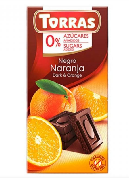 Шоколад Torras чорний з апельсином — це витончене поєднання насиченого темного шоколаду та цитрусової свіжості апельсина, створене без додавання цукру. Завдяки натуральним підсолоджувачам, плитка має збалансований смак із приємною фруктовою ноткою та легким шоколадним післясмаком.