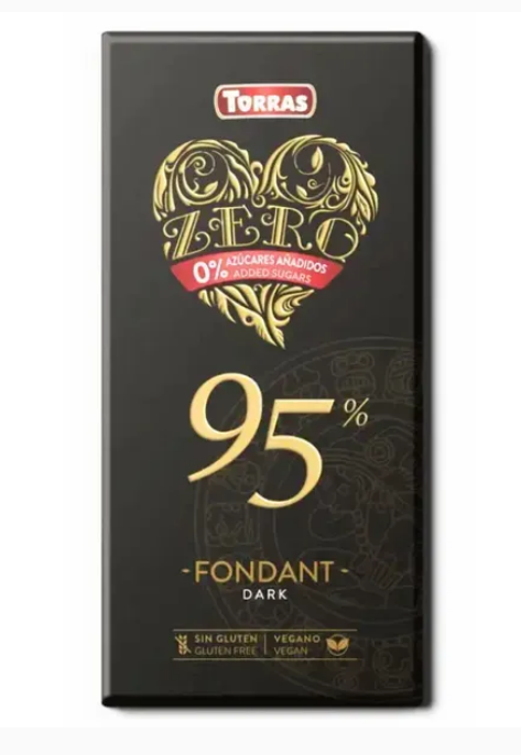 Torras Zero 95% какао — це елітний темний шоколад для тих, хто цінує максимальну насиченість смаку без додавання цукру. Завдяки високому вмісту какао (95%), плитка має глибокий аромат, легку гірчинку та чистий, натуральний шоколадний профіль.