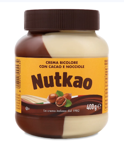 Шоколадна паста DUO Nutkao 400 г — це італійська шоколадно-горіхова паста з двома шарами: насиченим какао з фундуком і ніжним молочним кремом. Завдяки 7% вмісту фундука, паста має виразний горіховий смак, а поєднання темного та світлого шарів створює приємний контраст