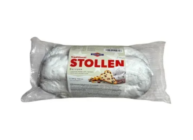 Штолен Quickbury Марципан — це традиційна німецька різдвяна випічка преміум-якості, створена за класичним рецептом із використанням добірних інгредієнтів. Ароматний кекс має ніжну, злегка щільну текстуру, щедро наповнений родзинками, цукатами та справжнім марципаном, який дарує неповторний смак та витончену солодкість.