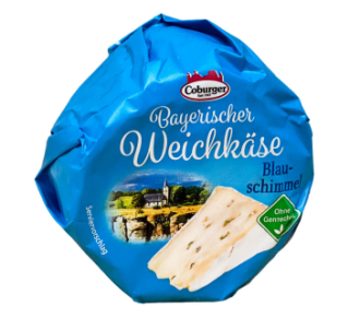 Сир Баварський з блакитною пліснявою без ГМО 150 г від ТМ Coburger — це м’який сир німецького виробництва з благородною блакитною пліснявою, що має насичений вершковий смак із характерною пікантною ноткою. Завдяки природному дозріванню без прискорювачів, сир набуває витонченого аромату та ніжної текстури з легким кристалічним ефектом.