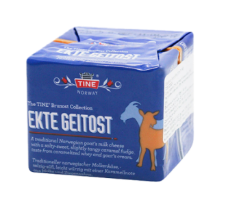 Сир Брюнст Геитуст 35%, 250 г, ТМ TINE — це традиційний норвезький напівтвердий сир із характерним карамельним смаком та коричневим кольором, який утворюється внаслідок тривалого варіння молочної сироватки. Його текстура щільна, але ніжна, а смак — солодкуватий, з нотками ірису та вершків. Ідеально підходить для подачі з хлібом, вафлями або як інгредієнт у десертних стравах. Вага 250 г — зручний формат для дегустації або щоденного споживання. Вироблено в Норвегії, жирність — 35%.