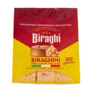 Сир Гран Бірахі кубики 200 г від італійського бренду Biraghi — це витриманий твердий сир, нарізаний зручними кубиками для легкого споживання. Він дозріває протягом 12–14 місяців, завдяки чому набуває щільної текстури, насиченого вершково-горіхового смаку та характерних кристалів кальцію, що свідчать про тривале дозрівання.