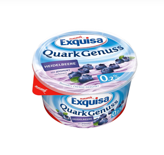 Сирний десерт TM Exquisa з чорницею — це ніжне поєднання легкого свіжого сиру та соковитої чорниці, яке дарує приємний смак і відчуття свіжості. Завдяки мінімальному вмісту жиру 0,2%, десерт підходить для збалансованого раціону та щоденного легкого перекусу.