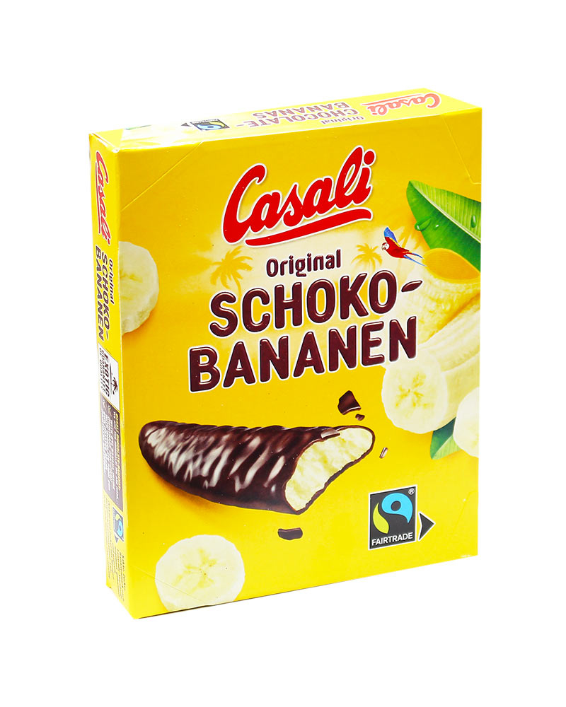 Casali Chocolate Bananas — це оригінальні австрійські цукерки, які поєднують ніжне бананове суфле з темним шоколадом, створюючи яскравий контраст смаків і текстур. Завдяки своїй унікальній формі — стилізованій під маленькі банани — ці ласощі не лише смачні, а й візуально привабливі.