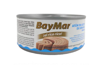 Консервований тунець Bay Mar — це якісний, натуральний продукт, виготовлений із світлого тунця (Atún Claro), який має ніжну текстуру, приємний смак і високий вміст білка. Завдяки збереженню в соняшниковій олії, м’ясо тунця залишається соковитим, ароматним і готовим до вживання без додаткової обробки.