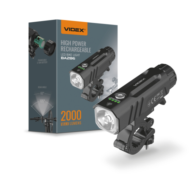 Покращте свою безпеку на дорозі та насолоджуйтеся нічними поїздками на велосипеді з нашим Велосипедним ліхтариком VIDEX VLF-BA286. Цей високоякісний ліхтарик спеціально розроблений для велосипедистів, які цінують якість, надійність та зручність. Покращте свою безпеку на дорозі та насолоджуйтеся нічними поїздками на велосипеді з нашим Велосипедним ліхтариком Велосипедним ліхтариком VIDEXVIDEX VLF-BA286. Цей високоякісний ліхтарик спеціально розроблений для велосипедистів, які цінують якість, надійність та зручність. VLF-BA286.ОСНОВНІ ХАРАКТЕРИСТИКИ: ОСНОВНІ ХАРАКТЕРИСТИКИ: ОСНОВНІ ХАРАКТЕРИСТИКИ: - Потужне освітлення: максимальна яскравість 2000 Lm, а максимальна дальність променя світла 225м у компактному корпусі. Оснащений потужним світлодіодом, який забезпечує яскраве та рівномірне освітлення дороги перед вами з кутом освітлення 105°. Ви зможете впевнено керувати велосипедом навіть в умовах обмеженої видимості. - Потужне освітлення: максимальна яскравість 2000 Lm, а максимальна дальність променя світла 225м у компактному корпусі. Оснащений потужним світлодіодом, який забезпечує яскраве та рівномірне освітлення дороги перед вами з кутом освітлення 105°. Ви зможете впевнено керувати велосипедом навіть в умовах обмеженої видимості. - Потужне освітлення:2000 Lm,225м105°.- Режими освітлення: ліхтарик має 7 режимів освітлення. Ви зможете вибрати найбільш зручний режим відповідно до умов на дорозі. Будь-який режим яскравості може перемикатися на мерехтіння. - Режими освітлення: ліхтарик має 7 режимів освітлення. Ви зможете вибрати найбільш зручний режим відповідно до умов на дорозі. Будь-який режим яскравості може перемикатися на мерехтіння. - Режими освітлення:має 7 режимів- Стабілізація світлового потоку: вбудована система стабілізації світлового потоку запобігає коливанням яскравості під час роботи. Рівномірно яскраве світло на протязі всієї подорожі. - Стабілізація світлового потоку: вбудована система стабілізації світлового потоку запобігає коливанням яскравості під час роботи. Рівномірно яскраве світло на протязі всієї подорожі. - Стабілізація світлового потоку:- Легка установка: кріплення ліхтарика до керма велосипеда дуже просте, швидке та надійне. Повністю алюмінієве кріплення з швидкознімним механізмом дозволяє встановити або зняти ліхтарик за лічені секунди. - Легка установка: кріплення ліхтарика до керма велосипеда дуже просте, швидке та надійне. Повністю алюмінієве кріплення з швидкознімним механізмом дозволяє встановити або зняти ліхтарик за лічені секунди. - Легка установка:- Змінний акумулятор: в комплект входить акумулятор VIDEX Li-ion 21700 ємністю 4000mAh, який можна швидко замінити за потреби. Необхідно відкрутити задню кришку, щоб дістатись до відсіку з акумулятором. При тривалих подорожах за відсутності можливості підзарядити акумулятор ліхтарика, рекомендуємо мати запасний акумулятор VIDEX Li-ion 21700 або VIDEX Li-ion 18650 (можна використовувати завдяки перехіднику з комплекту), який за потреби легко зможете замінити та продовжити подорож не чекаючи поки підзарядиться штатний акумулятор чи на вулиці стане світліше. - Змінний акумулятор: в комплект входить акумулятор VIDEX Li-ion 21700 ємністю 4000mAh, який можна швидко замінити за потреби. Необхідно відкрутити задню кришку, щоб дістатись до відсіку з акумулятором. При тривалих подорожах за відсутності
