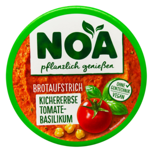 Закуска з нута Хумус томатно-базиліковий TM NOA, 175 г — це ніжна кремова паста, створена на основі відбірного нуту з додаванням соковитих томатів та ароматного базиліку. Завдяки такому поєднанню інгредієнтів хумус має свіжий, насичений смак із легкою кислинкою та виразним трав’яним відтінком, що нагадує середземноморську кухню.