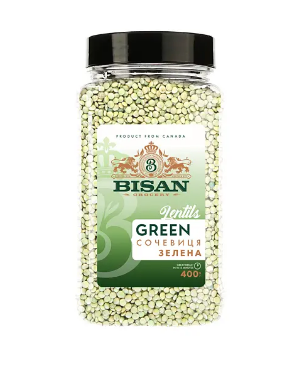 BISAN Чечевица зелёная 400 г, пл/б – это натуральный бобовый продукт высокого качества, являющийся источником растительного белка, клетчатки и микроэлементов. Зелёная чечевица имеет нежный вкус и хорошо сохраняет форму при приготовлении, поэтому её часто используют в супах, салатах, гарнирах и основных блюдах.