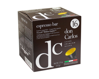 Кофе в капсулах CarraroDon Carlos Espresso Bar - высококачественный кофе аутентичной итальянской обжарки средней степени. Купаж состоит и зёрен арабики и робусты, обжаренных, измельчённых и упакованных в 10 капсул в защитной атмосфере. Напиток получается насыщенным и ароматным, со средним содержанием кофеина.