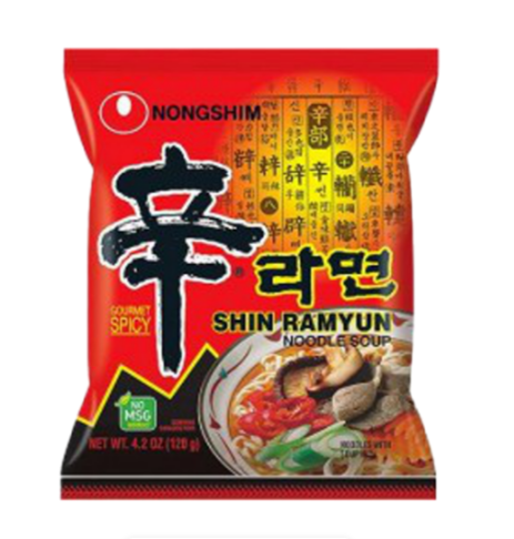 Лапша Рамен Шин 120 г (мульти-пак), ТМ Nongshim — это классический корейский рамен с насыщенным острым вкусом, ставший популярным во всём мире. Изготовлен из пшеничной муки твёрдых сортов, обладает упругой текстурой и отлично сочетается с ароматным бульоном на основе чеснока, красного перца, соевого соуса и сушёных овощей.
