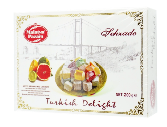Malatya Pazari Рахат-лукум с фруктовым ароматом Шехзаде, 200 г — это красочная подборка восточных сладостей с разнообразными фруктовыми вкусами в одной упаковке. Мягкая, нежная текстура в сочетании с натуральными ароматами апельсина, лимона, клубники и других фруктов делает этот рахат-лукум отличным выбором для ежедневного удовольствия или праздничного стола.