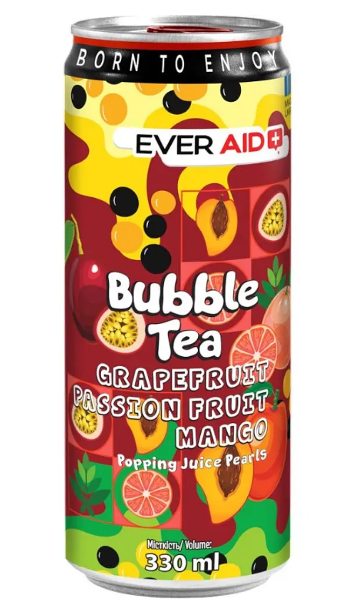 Безалкогольный напиток ТМ "EVER AID" BUBBLE TEA "Grapefruit Passion Fruit Mango" 0,33 л ж/б — это взрывной микс ярких тропических фруктов, сочетающий сочность манго, экзотическую кислинку маракуйи и лёгкую горчинку грейпфрута. Напиток обогащён желейными шариками, которые придают интересную текстуру и делают каждый глоток особенным. Этот bubble tea — настоящий вкусовой эксперимент для тех, кто любит открывать новые сочетания и наслаждаться оригинальными напитками.