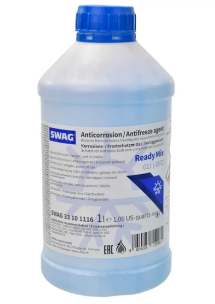 Охлаждающая жидкость SWAG G11 -35°C 1 л (синий) – это готовый к использованию антифриз на основе этиленгликоля с силикатными присадками (IAT – Inorganic Additive Technology). Он обеспечивает защиту двигателя от замерзания до -35 °C, перегрева и коррозии. Предназначен для систем охлаждения бензиновых и дизельных двигателей, особенно в старых моделях автомобилей, где производитель рекомендует стандарт G11.
