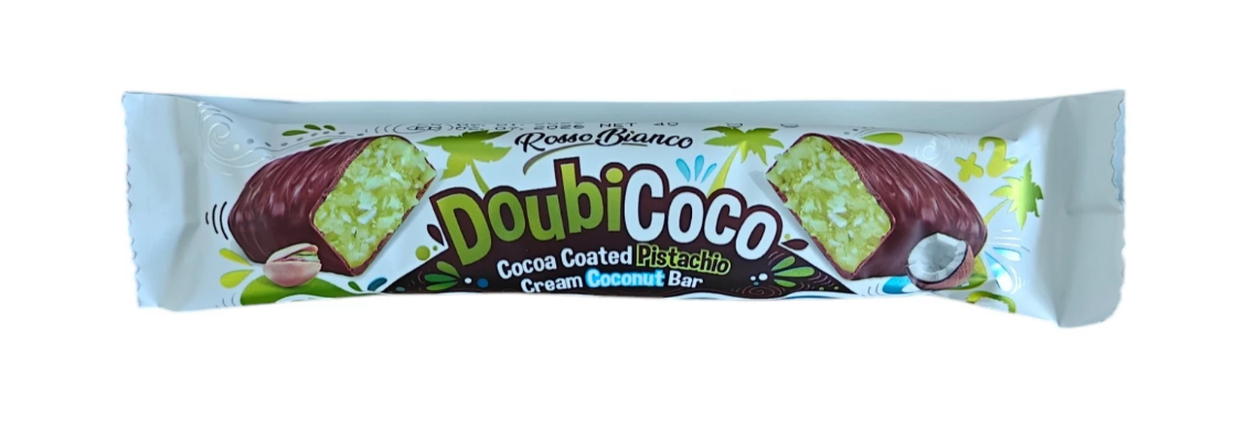 Rosso Bianco Doubi Coco, 40 г — это батончик, сочетающий экзотический кокос, нежное какао и изысканные фисташки. Настоящая находка для тех, кто любит насыщенные сладости с ярким вкусом и приятной текстурой. Каждый кусочек — это баланс между мягкой кокосовой стружкой, лёгкими шоколадными нотками и ореховой хрустинкой.