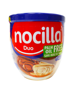 Шоколадно-молочная паста Nocilla Duo 180 г - это нежный кремовый продукт, сочетающий два вкуса: шоколадный и молочный с добавлением фундука. Она имеет двухслойную текстуру, легко намазывается и прекрасно подходит для тостов, блинов, круассанов или как начинка для десертов.